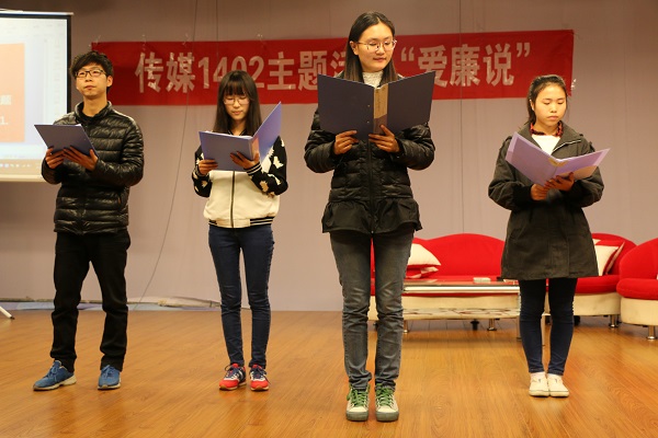 “不受曰廉,不污曰洁”。廉洁作为中华民族的传统美德,是大学生应有的道德品质。此次活动策划的节目,都紧紧围绕“廉洁”一词,朗诵、小品、小故事等等节目都精彩纷呈。朗诵深情并茂而又慷慨激昂,颇有少年“挥斥方遒”的气魄;小品《投其所好》既幽默风趣的令人捧腹大笑又内涵深刻的发人深省,这则小品描述了一个专投领导喜好的科长教导科员学习他一样拍马屁,最后被惩罚的故事,张帆、滕月、季玉玉的声情并茂的表演赢得了在场同学的阵阵好评。